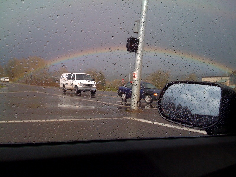 Another Rainbow Picture! Posted on April 4, 2009 | by Jeremy PersonOK this is going to be shocking to hear but it was raining in Cottage Grove, OR when we stopped for gas. On our way back to I-5 we saw this awesome rainbow.