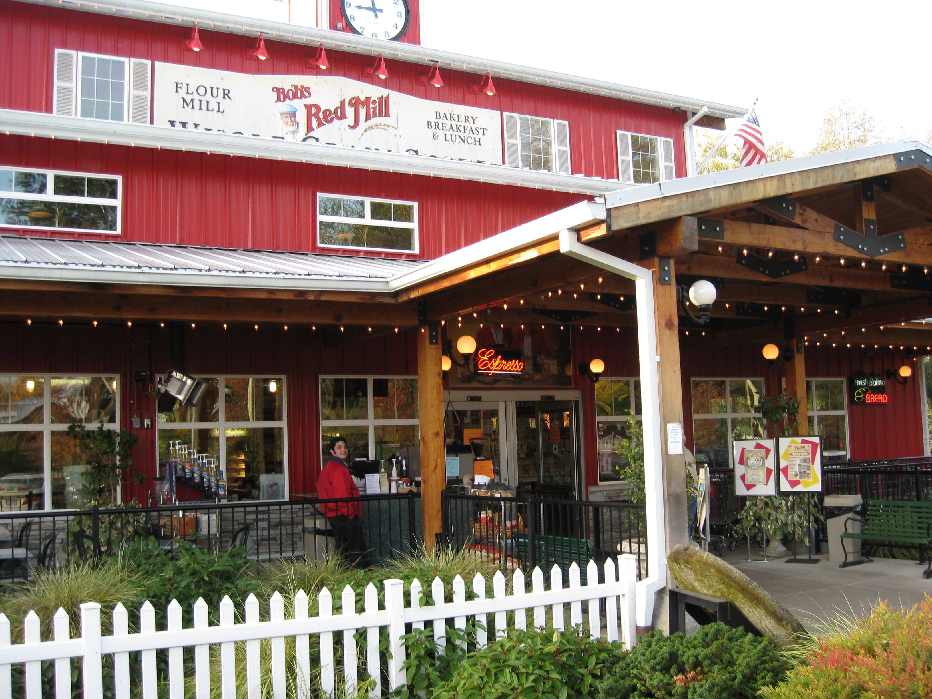 My mom, dad, nephew Evan, and I went to Bob’s Red Mill for breakfast this morning. If you are ever in the Portland, OR area you should definitely visit and get some breakfast. They opened a huge visitor’s center across the street from their mill which sells products they produce as well as serve breakfast and lunch.