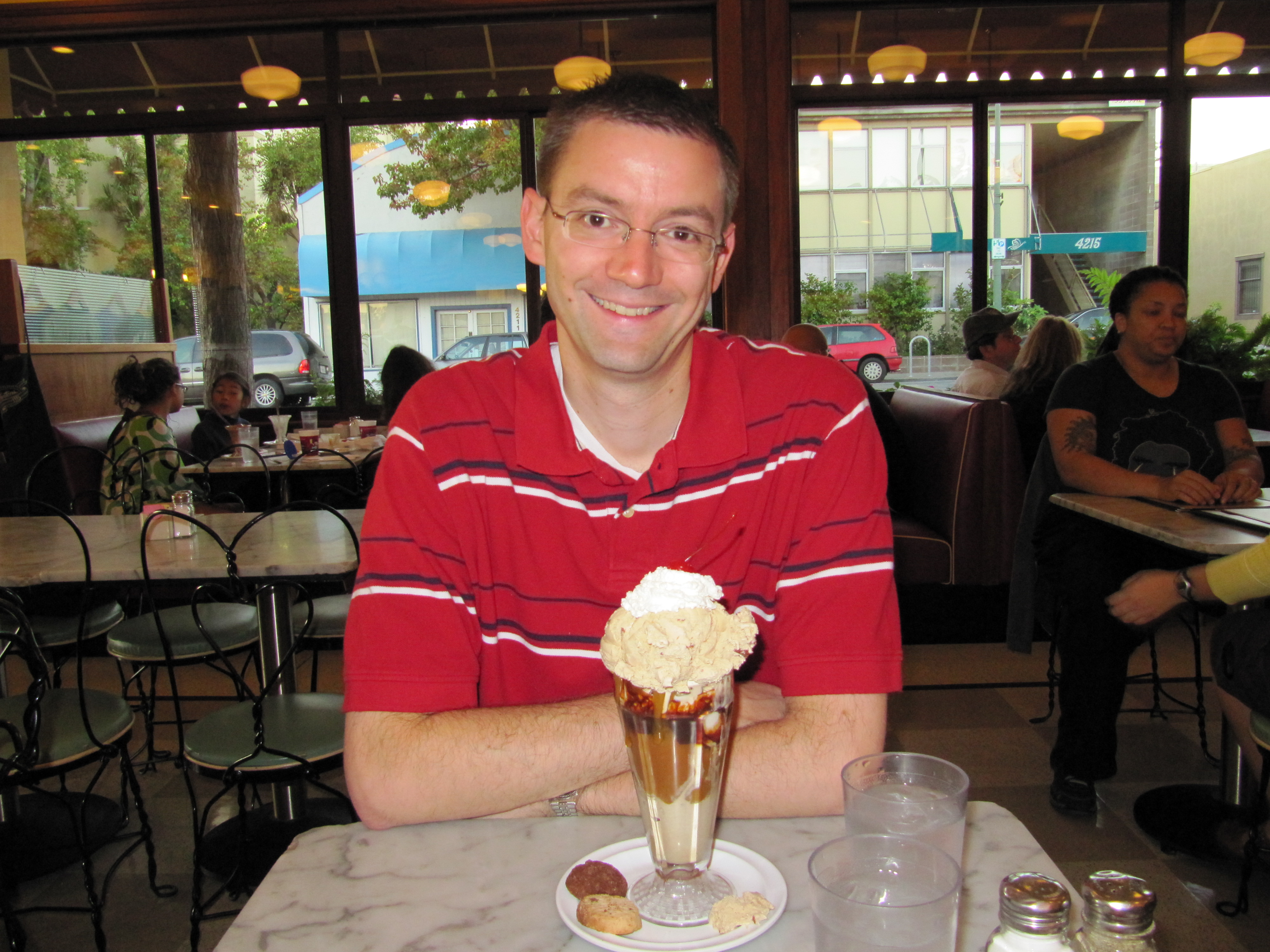 Went to Lake Merritt this afternoon for a 3.4-mile walk, which was fun because the weather was beautiful today. After the walk, we went to Fenton’s Ice Cream in Oakland because we couldn’t possibly have a calorie deficit. We then walked down Piedmont Street and found Gaylord’s Coffee, which was a funky coffee shop.